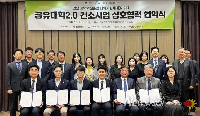 뉴스펀치 박세훈 기자 | 경상국립대학교 라이즈(RISE) 사업단 지역교육혁신센터는 4월 17일 창원 그랜드머큐어호텔에서 ‘공유대학2.0 컨소시엄 과제’ 참여대학 간 상호 협력 협약(MOU)을 체결했다.