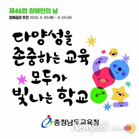 뉴스펀치 이현승 기자 | 충남교육청은 제46회 장애인의 날을 맞아 장애공감문화 확산을 위해 4월 20일 ~ 24일을 ‘장애공감주간’으로 운영한다고 밝혔다.