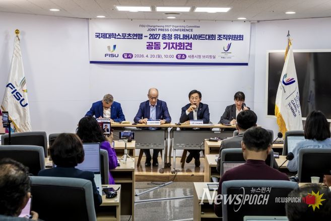 뉴스펀치 박세훈 기자 | 2027 충청 유니버시아드대회 조직위원회는 국제대학스포츠연맹(FISU) 회장단 방한을 계기로 20일 세종시청 브리핑실에서 공동 기자회견을 개최했다고 밝혔다.