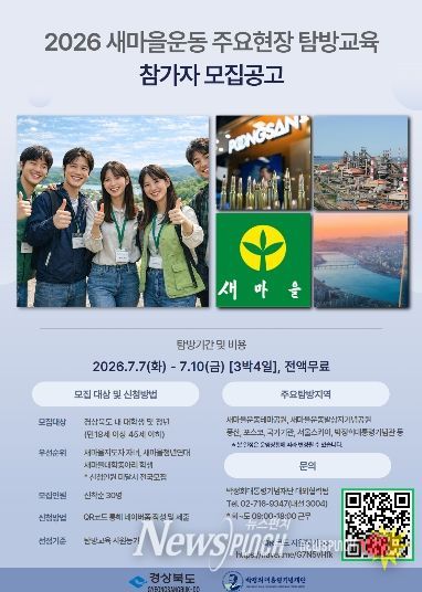 뉴스펀치 박세훈 기자 | 경상북도와 박정희대통령기념재단은 청년세대의 새마을운동에 대한 이해도를 높이고 가치 확산을 위해 ‘2026 새마을운동 주요현장 탐방교육’을 운영하고 참가자를 모집한다.