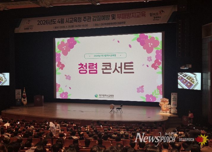 뉴스펀치 조평훈 기자 | 대구시교육청은 4월 20일 오후 2시 30분부터 대구학생문화센터 대공연장에서 교직원 및 관리자 등을 대상으로 ‘청렴콘서트’를 개최했다.