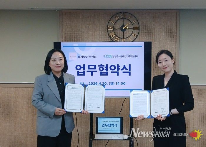 뉴스펀치 박상훈 기자 | 남양주시는 20일 남양주시장애인가족지원센터가 별가람아트센터와 장애인 가족을 위한 미술 심리서비스 업무협약(MOU)을 체결했다고 밝혔다.