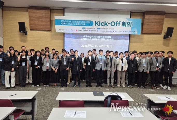 21일 전남대학교에 따르면, 전남대학교 산학협력단(생체재료개발센터)은 지난 4월 13일 김대중컨벤션센터에서 산업통상자원부 산업혁신기반구축사업 『바이오인터페이싱 인체이식형 생체흡수성 의료기기 실증기반구축』 사업의 ‘2026년도 Kick-off 회의’를 개최했다.