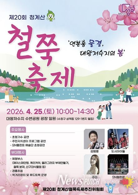 뉴스펀치 박상훈 기자 | 성남시는 ‘제20회 철쭉 축제’가 오는 4월 25일 오전 10시~오후 2시 30분 수정구 상적동 대왕저수지 수변공원 광장에서 열린다고 21일 밝혔다.