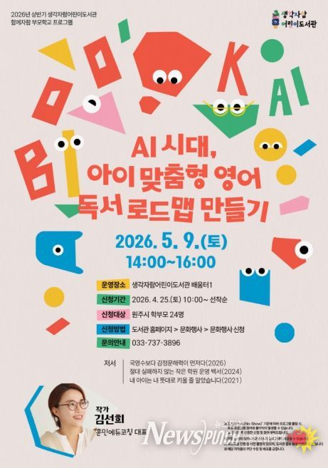 뉴스펀치 조평훈 기자 | 원주시 생각자람어린이도서관은 다음 달 9일 오후 2시, ‘AI 시대, 아이 맞춤형 영어 독서 로드맵 만들기’를 주제로 5월 ‘함께자람 부모학교’ 프로그램을 운영한다.