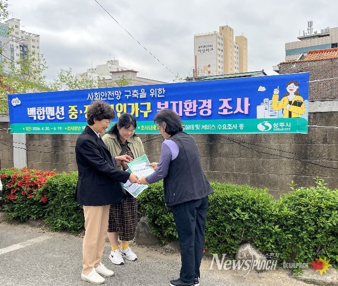 뉴스펀치 박세훈 기자 | 상주시는 4월 20일부터 6월 19일까지 상주시 백합맨션 거주 중·장년(40~64세) 1인 가구를 대상으로 고독사 예방 및 사회적 고립가구 조기발견을 위한 복지환경 조사를 실시한다.
