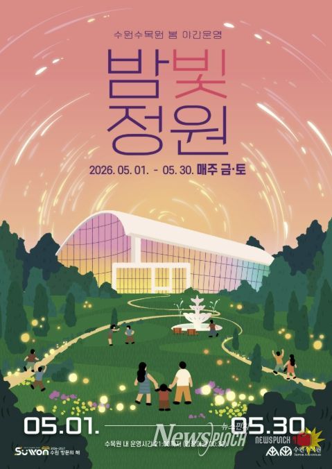 뉴스펀치 박상훈 기자 | 수원특례시가 5월 1일부터 30일까지 매주 금·토요일 일월·영흥수목원에서 ‘2026년 수원수목원 봄 밤빛정원’을 연다.