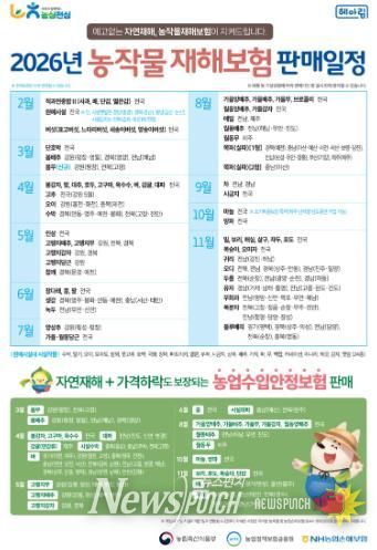 4월부터 벼·대파·고추 등을 시작으로 품목별로 순차 가입이 가능하며, 가입을 바라는 농업인은 가까운 농·축협이나 원예농협에 신청할 수 있다.