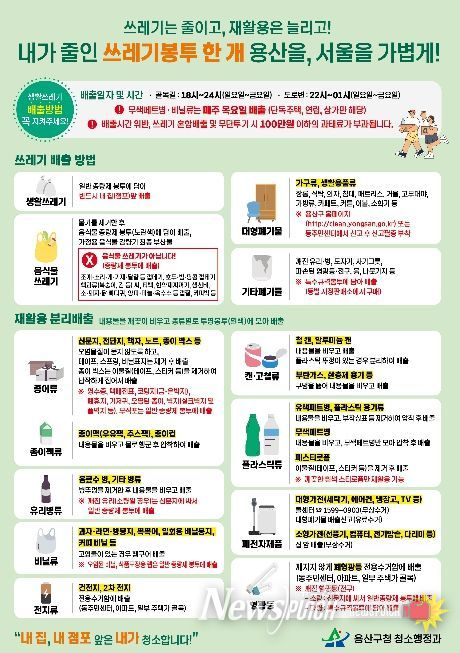 뉴스펀치 박상훈 기자 | 서울 용산구가 주민 누구나 생활쓰레기 분리배출 정보를 쉽게 이해하고 실천할 수 있도록 주요 배출 정보를 한 장에 담은 안내문을 제작·배포한다.