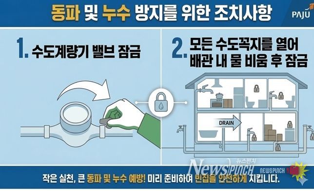 뉴스펀치 박상훈 기자 | 파주시가 겨울철 한파와 여름철 집중호우로 반복되는 빈집(3개월 이상 수도 사용량이 없는 수용가) 수도 누수 문제 해결에 본격적으로 나선다.