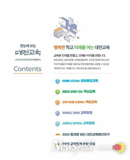 뉴스펀치 이현승 기자 | 대전교육과학연구원 대전교육정책연구소는 2025년 대전교육 주요 정책의 성과를 종합적으로 분석한 ‘한눈에 보는 대전교육’을 발간했다고 밝혔다.