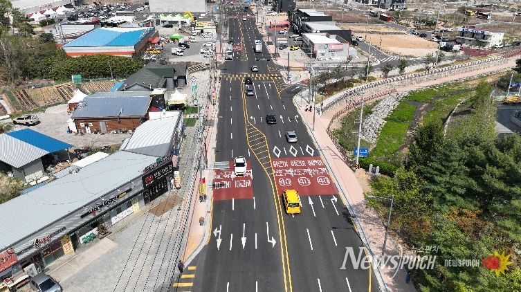 시는 총사업비 183억 원을 투입해 원호리·문성리·송림리를 잇는 2.56km 구간 도로 확장에 나섰다. 기존 보도를 일부 조정해 차로를 확보하고, 폭이 부족한 구간에는 인노천 사면을 활용한 데크 보도를 설치해 추가 차로를 확보했다. 구간별 유턴 공간도 새로 조성해 교통 흐름 개선에 힘을 실었다. 사업이 완료되면 출퇴근 시간대 정체가 크게 완화될 것으로 전망된다.