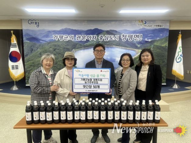 뉴스펀치 박상훈 기자 | 가평군농협 청평지점 농가주부모임이 20일 지역 내 어려운 이웃을 위해 직접 만든 맛간장 50개를 청평면에 기탁했다.