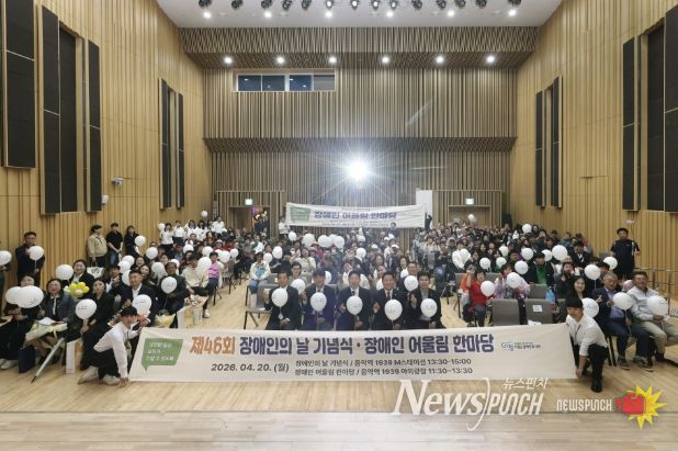 뉴스펀치 박상훈 기자 | 가평군은 20일 가평군장애인복지관 주관으로 ‘제46회 장애인의 날 기념식 및 화합 행사’를 개최했다. 음악역1939에서 열린 이번 행사에는 장애인과 시설·단체 관계자, 지역 주민 등 400여 명이 참석해 의미 있는 소통의 시간을 가졌다.