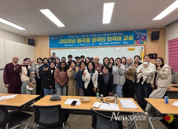뉴스펀치 김용희 기자 | 순천시 매곡동은 지난 17일 매곡동 행정복지센터에서 외국인 주민, 자원봉사자 40여 명이 참석한 가운데 ‘2026년 매곡동 외국인 한국어교실’ 개강식을 열고 본격적인 운영에 들어갔다.