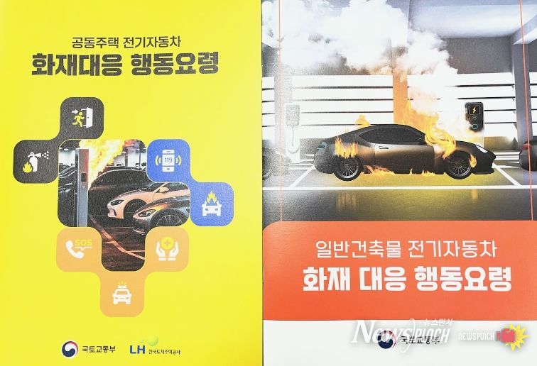 책자는 국토교통부와 한국토지주택공사의 전기자동차 화재 대응 행동 요령 및 화재 안전 지침서(매뉴얼)를 기반으로 구성됐으며, △충전 중 화재 발생 시 대응요령 △시설 관리자 및 입주민 행동수칙 △신속한 신고 및 대피 요령 △충전구역 지정 시 고려사항 등을 담았다.