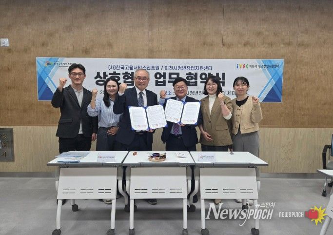 뉴스펀치 박상훈 기자 | 이천시는 청년 취업 및 창업 지원 강화를 위해 사단법인 한국고용서비스진흥원과 이천시 청년창업지원센터가 지난 4월 15일 센터 세미나실에서 업무협약(MOU)을 체결했다고 밝혔다.