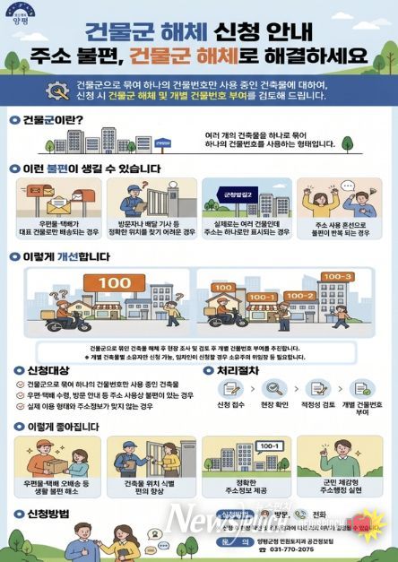 뉴스펀치 박상훈 기자 | 양평군은 건물군으로 묶여 하나의 건물번호만 사용하고 있는 건축물을 대상으로 건물군 해체 및 개별 건물번호 부여를 추진해 군민의 주소 사용 불편을 해소할 계획이라고 밝혔다. 이번 사업은 국민불편사항 개선 과제의 일환으로 추진되며, 실제 이용 형태와 맞지 않는 주소 체계를 정비해 보다 정확한 주소 사용 환경을 조성하기 위해 마련됐다.