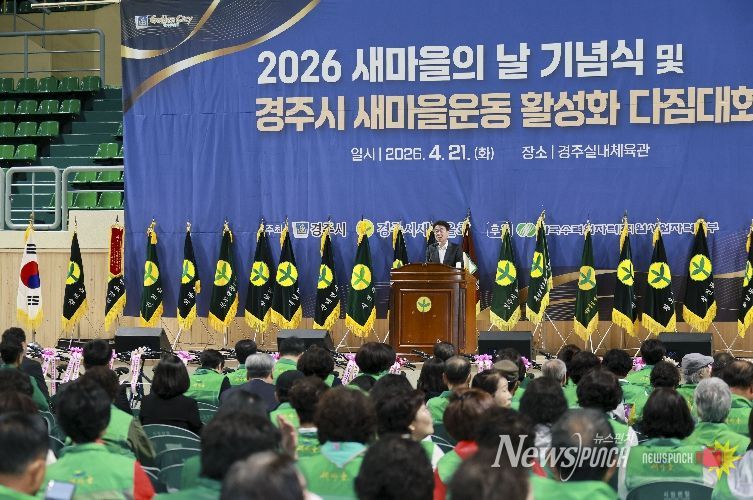 뉴스펀치 박세훈 기자 | 경주시새마을회(회장 박정원)는 21일 황성공원 실내체육관에서 ‘새마을운동 제창 56주년 제16회 새마을의 날 기념식 및 2026 경주시 새마을운동 활성화 다짐대회’를 개최했다.