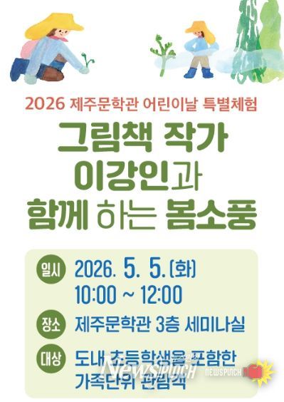 뉴스펀치 김용희 기자 | 제주특별자치도 제주문학관은 오는 5월 5일 어린이날을 맞아 가족 단위 관람객을 위한 특별 체험 프로그램 ‘이강인 작가와 함께하는 봄소풍’을 운영한다.