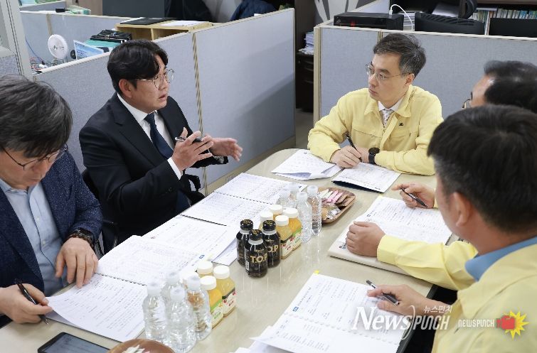 뉴스펀치 이현승 기자 | 충북도가 21일 괴산 청천면 소재 아스콘공장에서 중동 지역 정세 악화에 따른 건설자재 수급 불안에 대응하기 위하여 현장 간담회를 개최했다.