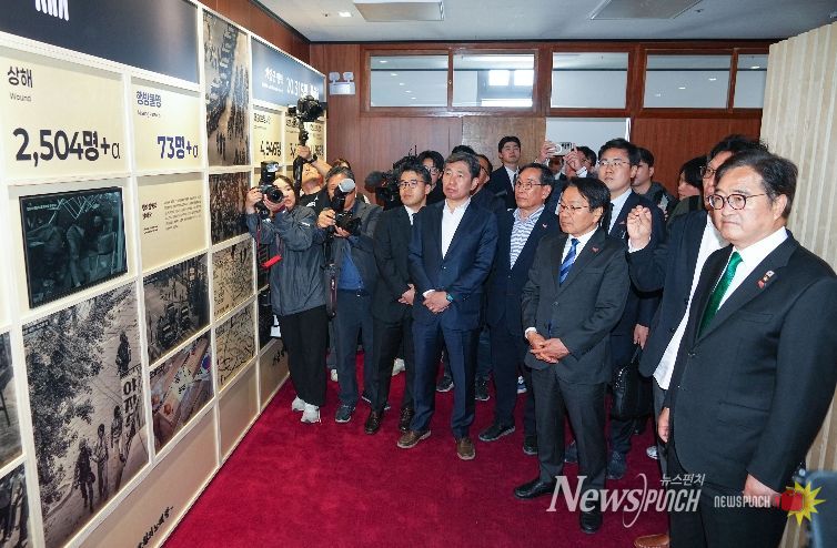 우원식 의장과 강기정 시장은 도청 본관 → 도경찰국 본관 → 상무관 순으로 50분가량 관람했다. 특히 경찰국 주제영상실과 상무관에서 항쟁 과정 및 희생자 시신 수습 과정을 주제로 한 영상을 시청하며 민주주의를 위해 희생한 이들을 기억했다. 또 도청 외벽, 도청 앞 은행나무 등에 새겨진 탄두 흔적 등을 주의 깊게 살펴봤다.