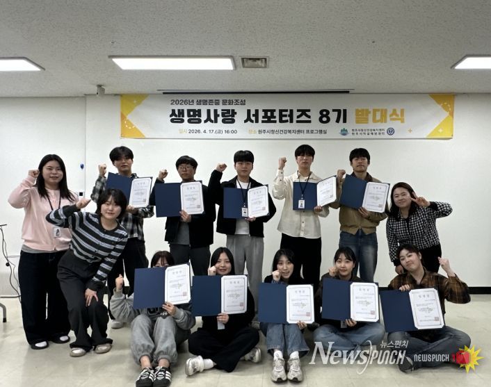 뉴스펀치 조평훈 기자 | 원주시자살예방센터는 지난 17일 자살 예방과 생명 존중 문화 확산을 위한 ‘제8기 생명사랑 서포터즈’ 발대식을 개최했다.