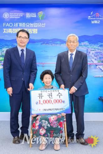 뉴스펀치 박세훈 기자 | (재)남해군인재육성재단은 올해 구순을 맞은 류권수 상주면 노인대학장이 100만 원의 인재육성기금을 기탁했다고 밝혔다.
