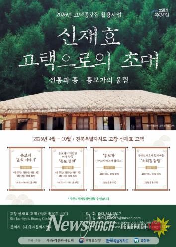 뉴스펀치 정홍균 기자 | 고창군이 (사)동리문화사업회와 국가유산청 고택·종갓집 활용사업으로 ‘신재효 고택으로의 초대’를 고창 신재효 고택과 판소리공원 일대에서 오는 25일부터 10월까지 본격 운영한다고 밝혔다.