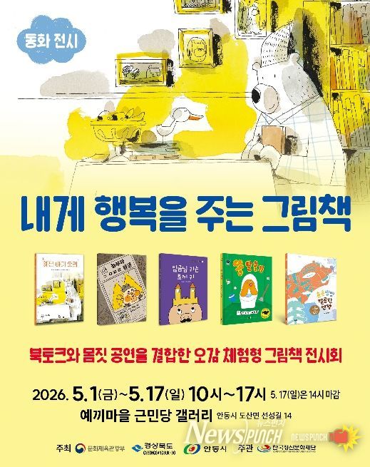 뉴스펀치 박세훈 기자 | 안동시와 (재)한국정신문화재단은 가정의 달 5월을 맞아 5월 1일부터 17일까지 안동 선성현문화단지 근민당 갤러리에서 ‘내게 행복을 주는 그림책’ 행사를 개최한다고 밝혔다.
