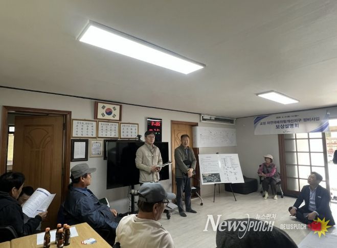 뉴스펀치 이현승 기자 | 보령시는 ‘교성 자연재해위험개선지구 정비사업’의 원활한 추진을 위해 지난 21일 오포2리 마을회관에서 보상설명회를 개최했다고 밝혔다.
