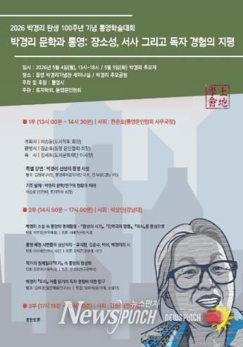 뉴스펀치 박세훈 기자 | 통영시는 한국 문학의 거목 박경리 선생 탄생 100주년을 맞아 오는 5월 4일 오후 1시 박경리기념관 세미나실에서 통영문인협회와 토지학회가 공동 주관하는 ‘2026 박경리 탄생 100주년 기념 통영학술대회’를 개최한다.