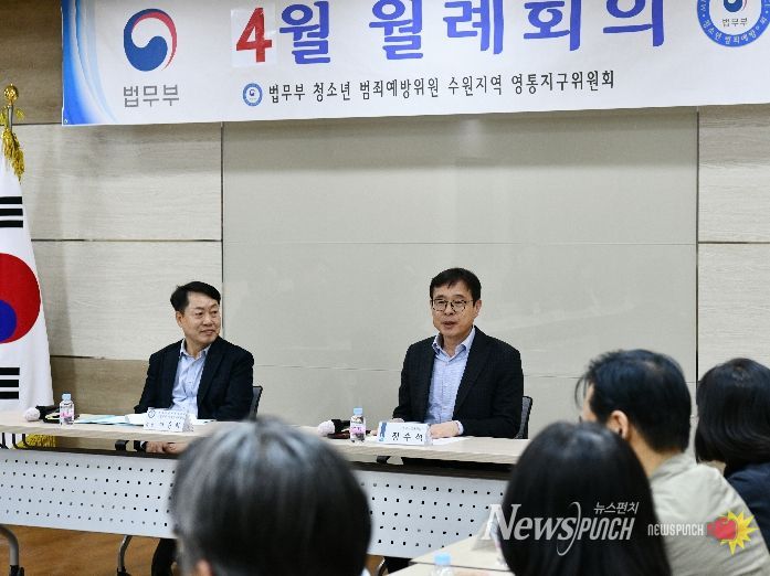 뉴스펀치 박상훈 기자 | 수원시 영통구는 지난 21일, 법무부 청소년 범죄예방위원 수원지역 영통지구위원회(이하 ‘범죄예방위원회’) 주관으로 영통구청 상황실에서 4월 월례회의를 개최했다.