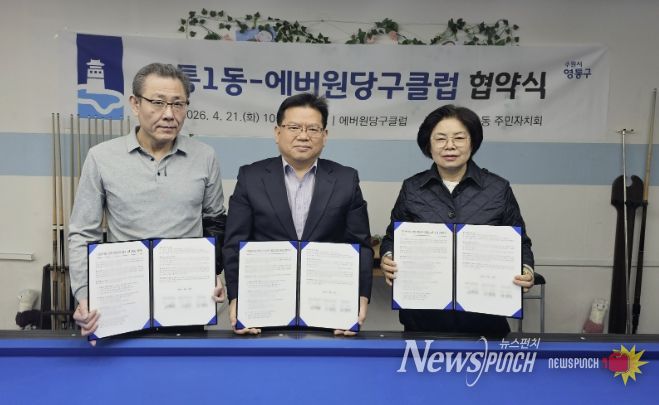 뉴스펀치 박상훈 기자 | 수원시 영통구 영통1동 행정복지센터와 영통1동 주민자치회는 지난 21일, 주민자치센터 프로그램의 다양성과 전문성을 강화하기 위해 관내 민간체육시설인 에버원당구클럽과 업무협약을 체결했다.