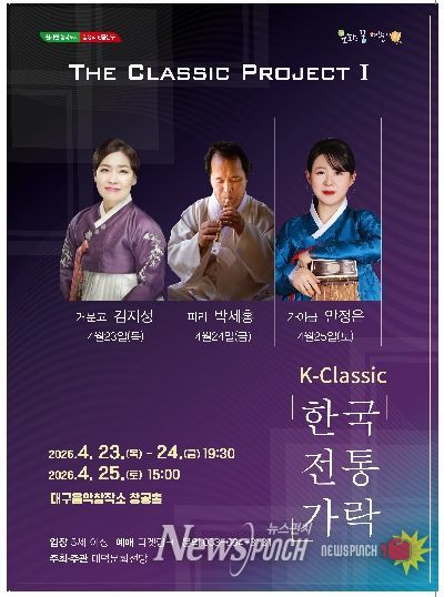 뉴스펀치 조평훈 기자 | 대구 남구 대덕문화전당이 순수예술 활성화를 위해 지난해 신설한 ‘The Classic Project’의 2026년 상반기 시리즈가 세계적으로 각광받고 있는 국악의 매력을 소개하는 무대들로 오는 4월 23일부터 4월 25일까지 사흘간 대구음악창작소 창공홀에서 펼쳐진다.