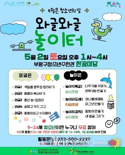 뉴스펀치 정홍균 기자 | 부평구청소년수련관은 오는 5월 2일 청소년 체험 행사 ‘와글와글 놀이터’를 운영한다고 밝혔다.