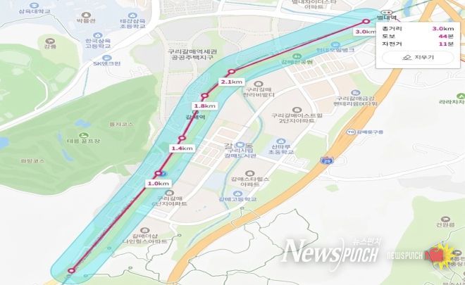 뉴스펀치 박상훈 기자 | 구리시는 수도권 광역급행철도 GTX-B 개통 이후 경춘선 선로의 철도 운행 횟수가 많이 늘어날 것으로 예상됨에 따라, 갈매동 일대 경춘선 선로 주변 약 3km 구간을 '소음·진동관리법' 제27조에 따라 4월 22일부로 교통소음(철도) 관리지역으로 지정한다고 밝혔다.