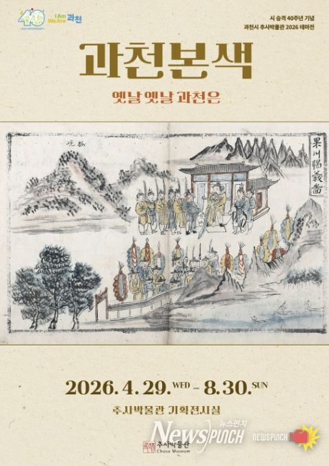 뉴스펀치 박상훈 기자 | 과천시 추사박물관은 시 승격 40주년을 기념하여 ‘2026 테마전 '과천본색–옛날 옛날 과천은'’을 개최한다고 밝혔다. 이번 전시는 4월 29일 오후 3시 개막식을 시작으로 8월 30일까지 추사박물관 기획전시실에서 진행된다.