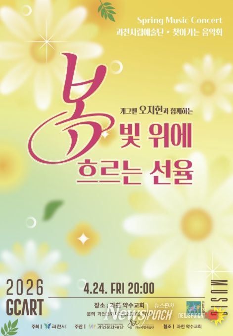 뉴스펀치 박상훈 기자 | 과천시는 오는 24일 오후 8시, 과천 약수교회에서 시민들을 위한 특별한 문화 공연 ‘봄빛 위에 흐르는 선율’을 개최한다.