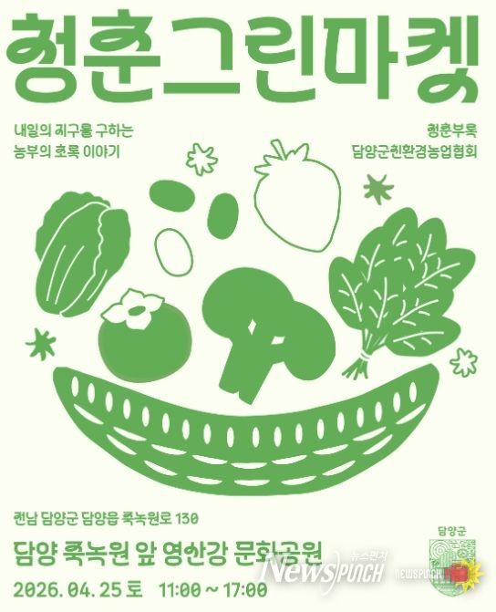 뉴스펀치 최영남 기자 | 담양군친환경농업협회가 오는 25일 오전 11시부터 오후 5시까지 죽녹원 앞 영산강 문화공원에서 ‘제2회 청춘그린마켓’을 연다.