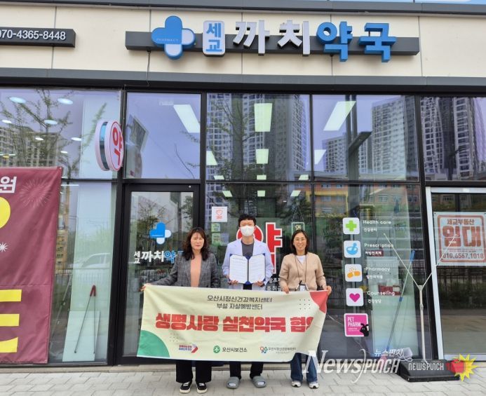 뉴스펀치 박상훈 기자 | 오산시정신건강복지센터 부설 자살예방센터는 지역사회 기반 생명존중 문화 확산과 자살예방 체계 강화를 위해 지난 20일과 21일 이틀간 관내 약국 4곳과 ‘생명사랑약국’ 업무협약을 체결했다고 밝혔다.