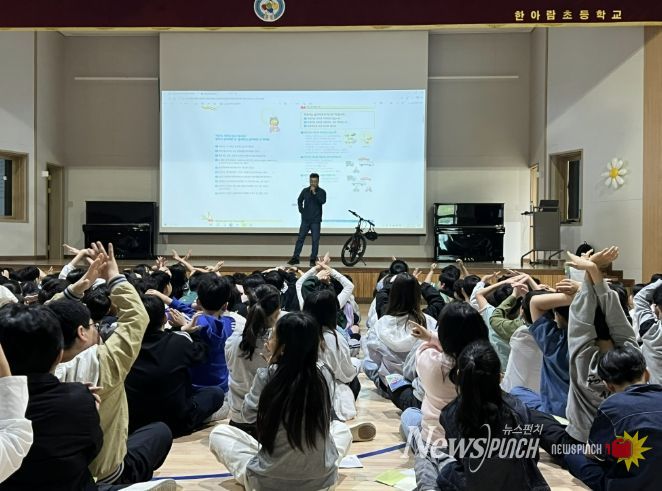 뉴스펀치 박상훈 기자 | 광주 한아람초등학교는 4월 20일부터 21일까지 이틀간 광주시 자전거연맹과 협력해 4학년 학생 223명을 대상으로 ‘찾아가는 자전거 안전교육’을 실시했다.