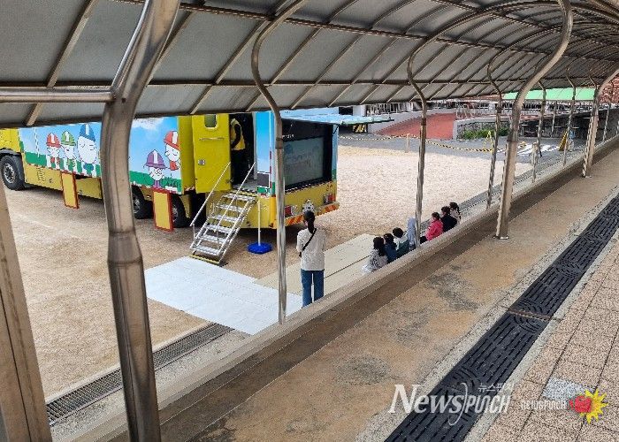 이번 교육은 이론 중심의 안전교육에서 벗어나 학생들이 직접 체험을 통해 재난 상황 대처 방법을 익히도록 하기 위해 마련됐다. 학교 운동장에 설치된 특수 제작 차량 내부에서 다양한 상황을 간접적으로 경험하는 방식으로 진행됐다.
