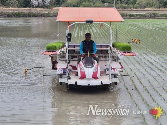뉴스펀치 김용희 기자 | 신안군은 지역 특성에 맞는 조생종 벼 품종 선발과 최적 이앙시기 확립을 위해 지난 20일 자은면 2ha 규모 실증포장에서 첫 모내기 작업을 실시했다.
