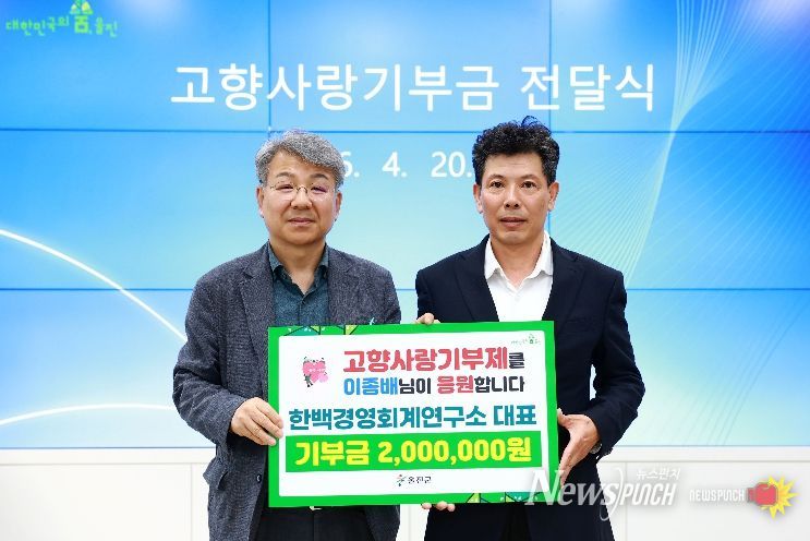 뉴스펀치 박세훈 기자 | 한백경영회계연구소 이종배 대표가 지난 4월 20일 울진군에 고향사랑기부금 200만 원을 전달했다.