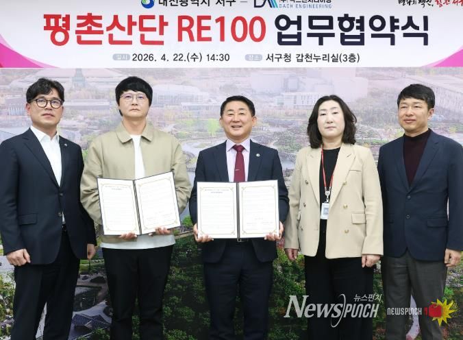 뉴스펀치 이현승 기자 | 대전 서구는 22일 구청 갑천누리실에서 평촌일반산업단지 입주기업인 ㈜닥스엔지니어링과 재생에너지 보급 확산을 위한 ‘RE100 업무협약’을 체결했다.