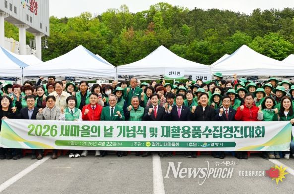 뉴스펀치 박세훈 기자 | 밀양시새마을회(회장 이선동)는 22일 밀양종합운동장에서 새마을운동 제56주년을 맞아 ‘제16회 새마을의 날 기념식’과 함께 ‘우리동네 새단장’ 재활용품 수집 경진대회를 개최했다.