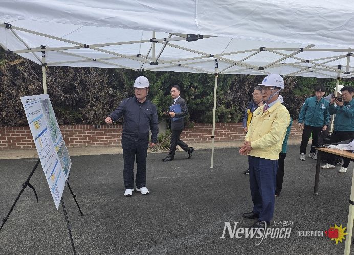 박 시장은 재난안전과 관계공무원 및 감리단, 시공사 등 외부전문가와 함께 대방동 일원의 “청널지구 우수저류시설 설치사업”현장을 방문했다.