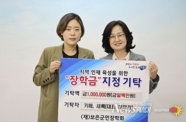 뉴스펀치 이현승 기자 | 충북 보은군은 23일 ‘카페, 새록’ 최미정 대표가 지역 인재육성을 위한 장학금 100만 원을 보은군민장학회에 기탁했다고 밝혔다.