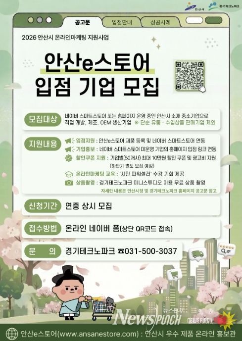 뉴스펀치 박상훈 기자 | 안산시는 관내 중소기업의 판로 확대와 홍보 강화를 위해 안산시 우수 제품 온라인 홍보관 ‘안산e스토어’에 신규 입점할 기업을 모집한다고 23일 밝혔다.